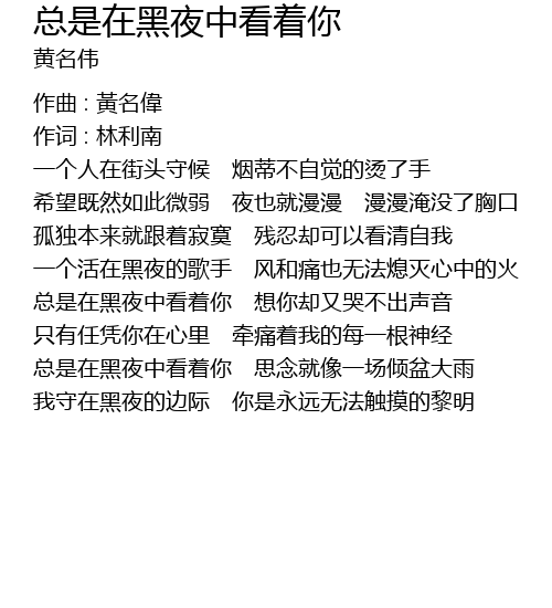 | 总是在黑夜中看着你 想你却又哭不出声音 | |