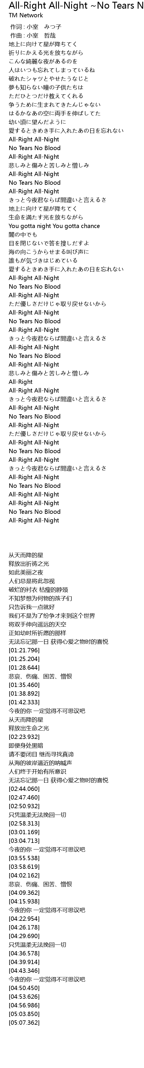 | Song | All-Right All-Night ~No Tears No Blood~ |