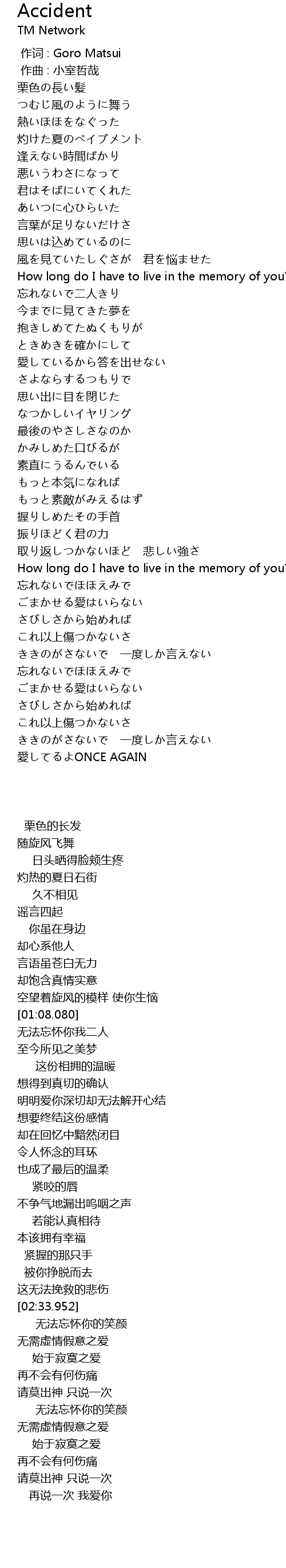 | [02:33.952] | How long do I have to live in the memory of you? |