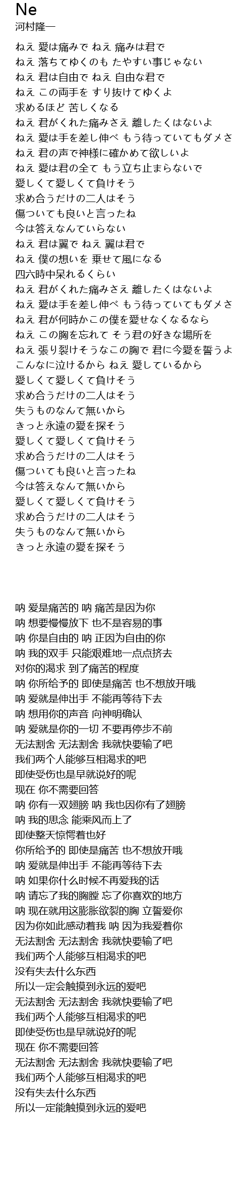 | [00:13.040] | ねえ 愛は痛みで ねえ 痛みは君で |
