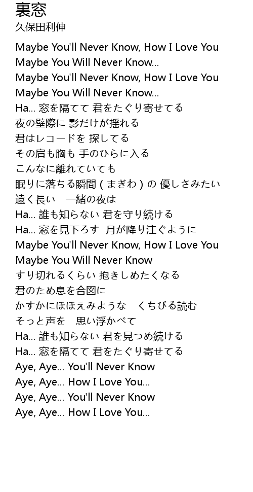 | [00:18.76] | Maybe You Will Never Know... |