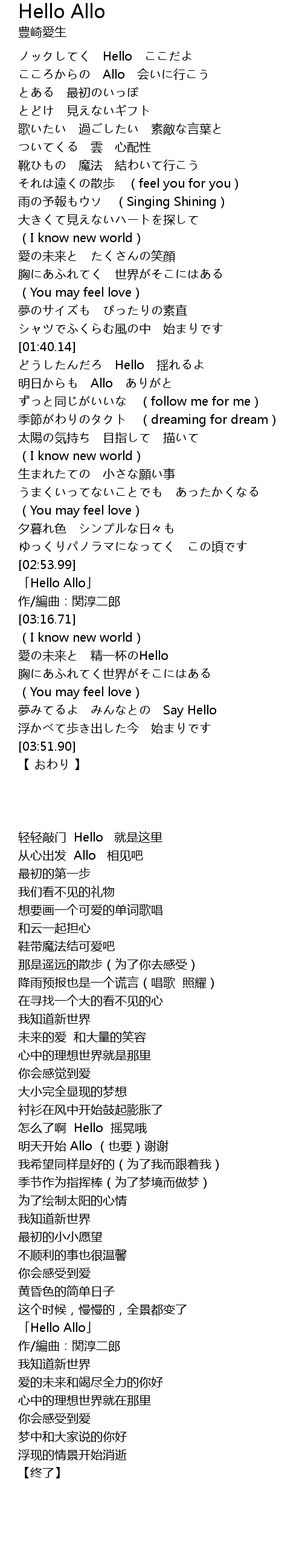 | [02:56.71] | 「Hello Allo」 |