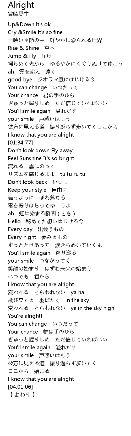 | [03:02.48] | I know that you are alright. |