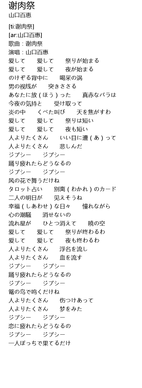 | [02:29.474] | 爱して 爱して 祭りが终わるわ |