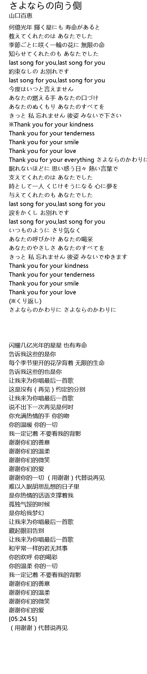| [02:21.37] | Thank you for your everything さよならのかわりに※ |