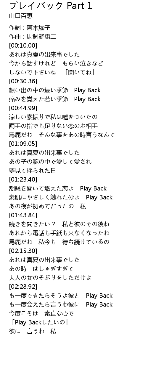 | [02:51.34] | 「Play Backしたいの」 |
