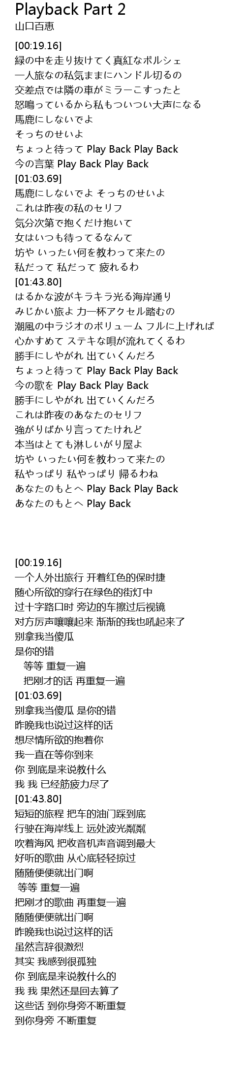| [00:54.10] | ちょっと待って Play Back Play Back |