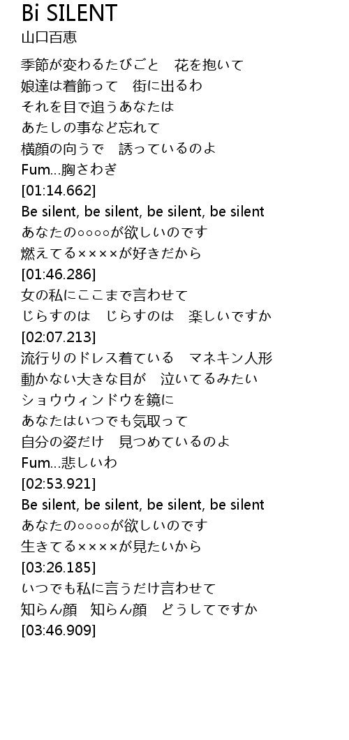 | [01:17.088] | Be silent, be silent, be silent, be silent |
