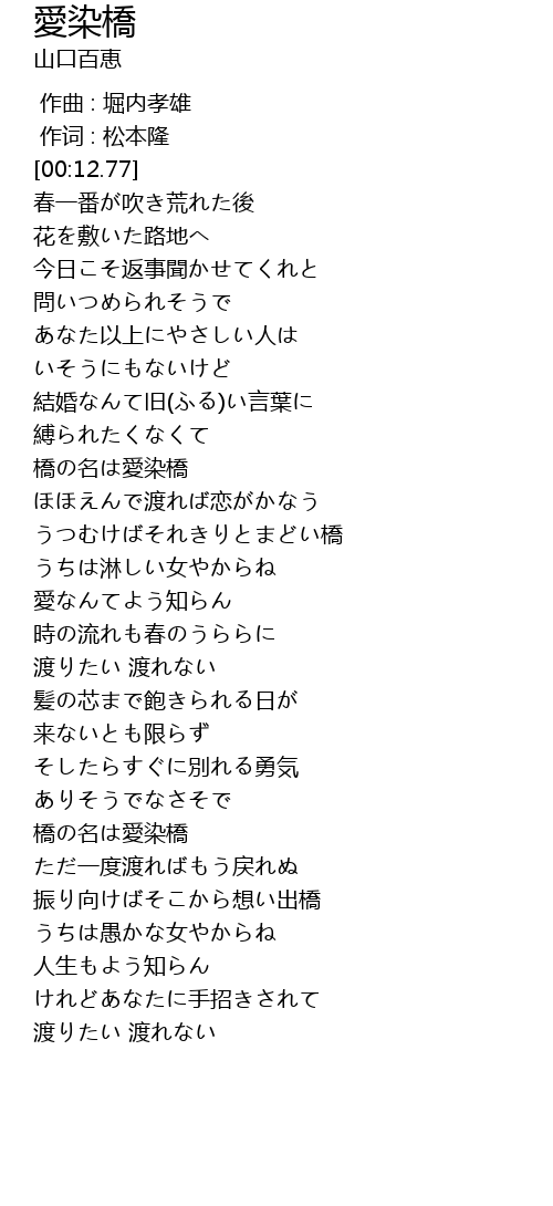 | [02:35.83] | 橋の名は愛染橋 |