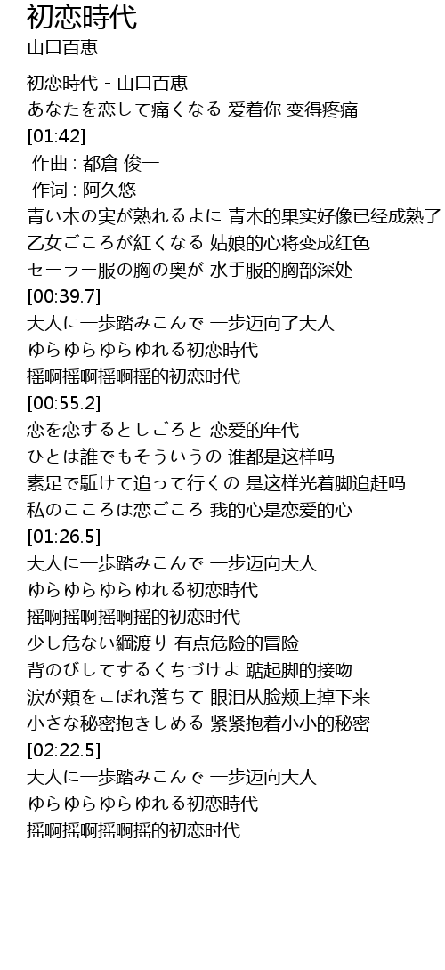 | [00:47.7] | ゆらゆらゆらゆれる初恋時代 摇啊摇啊摇啊摇的初恋时代 |
