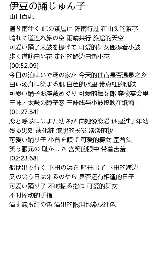 | [00:38.45] | 可爱い踊子太鼓を提げて 可爱的舞女郎提着小鼓 |