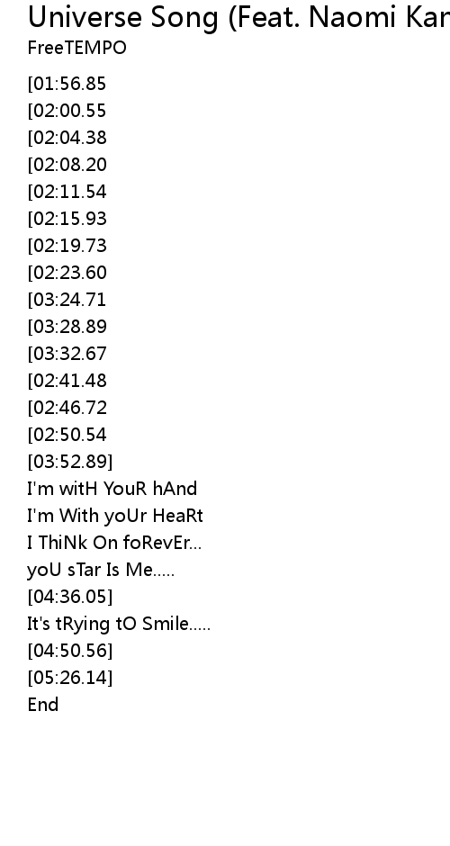 | [03:39.17][02:41.48][01:43.88] | I'm witH YouR hAnd |