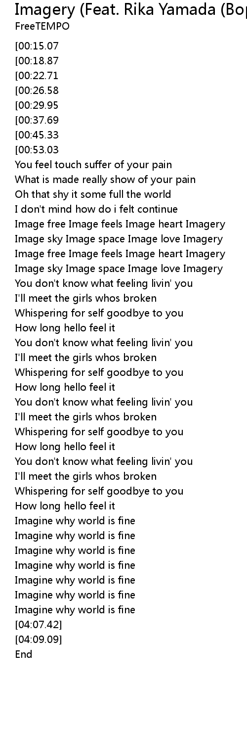 | [02:17.47][00:45.33] | Image free Image feels Image heart Imagery |