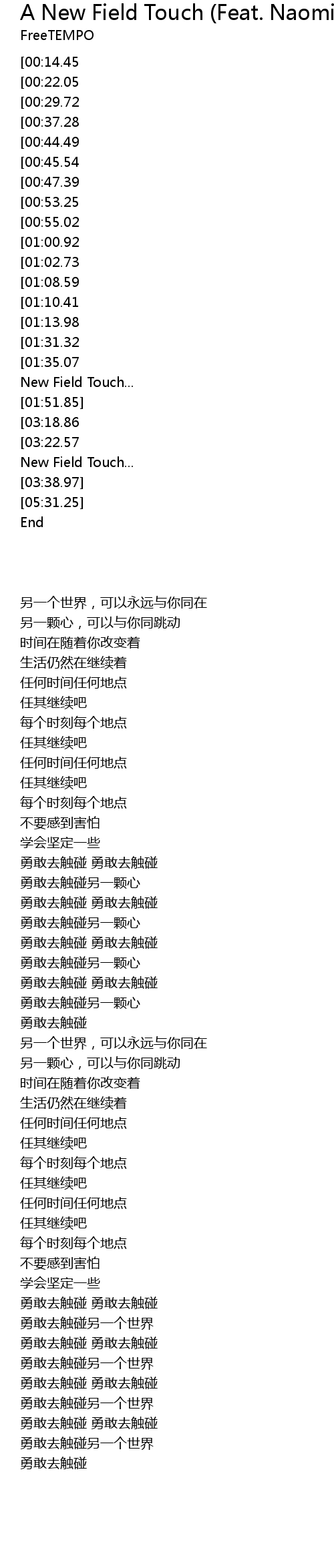 | [03:26.44][03:18.86][03:11.14][03:03.44] | New Field Touch. New Field Touch |