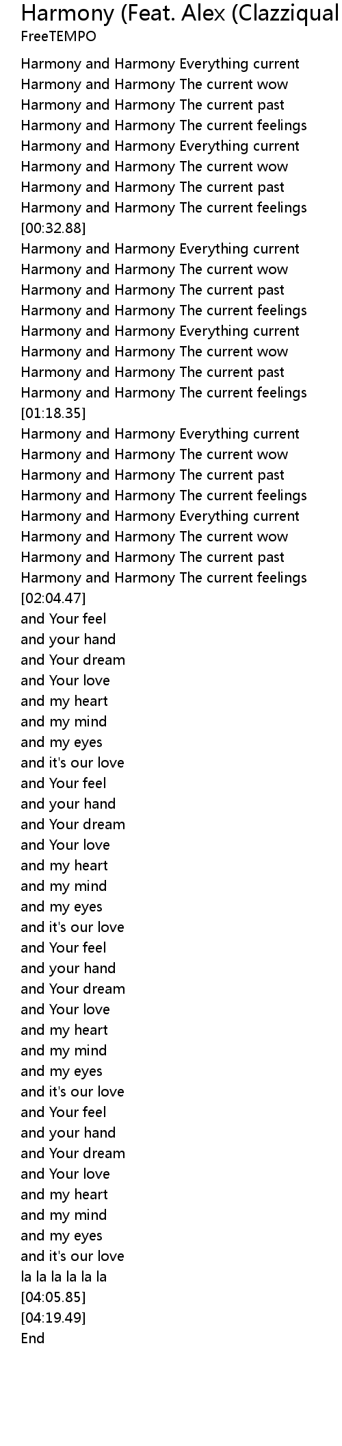 | [00:00.56] | Harmony and Harmony Everything current |