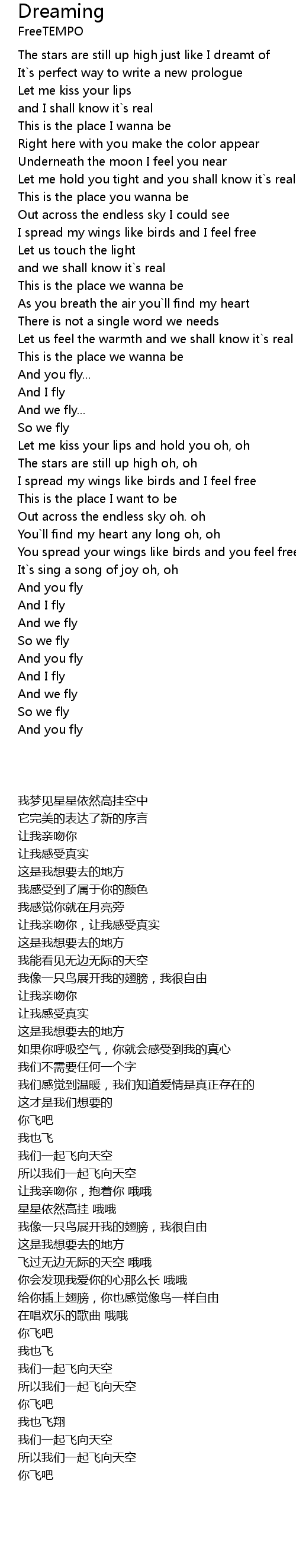 | [02:54.76] | You spread your wings like birds and you feel free |