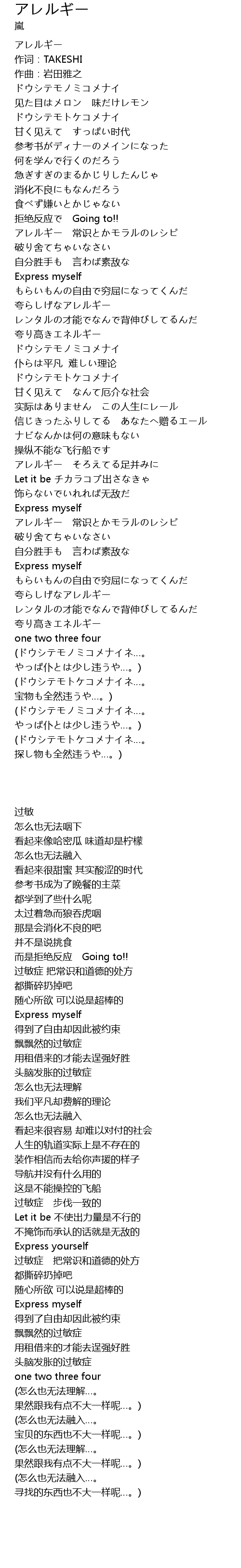 | [00:01.92] | アレルギー |