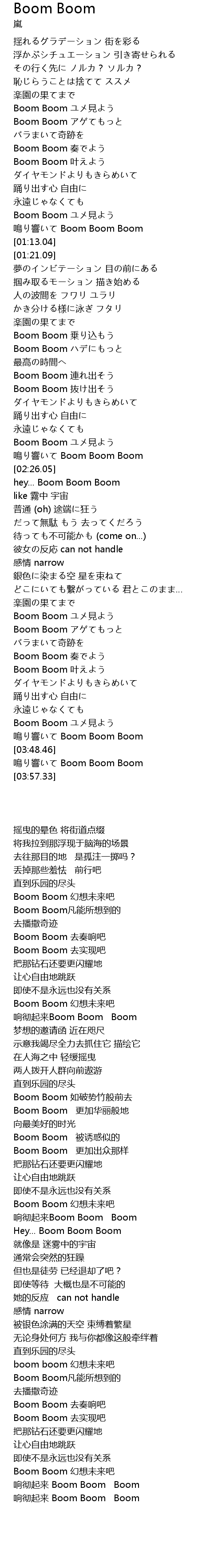 | [02:22.15] | 鳴り響いて Boom Boom Boom |