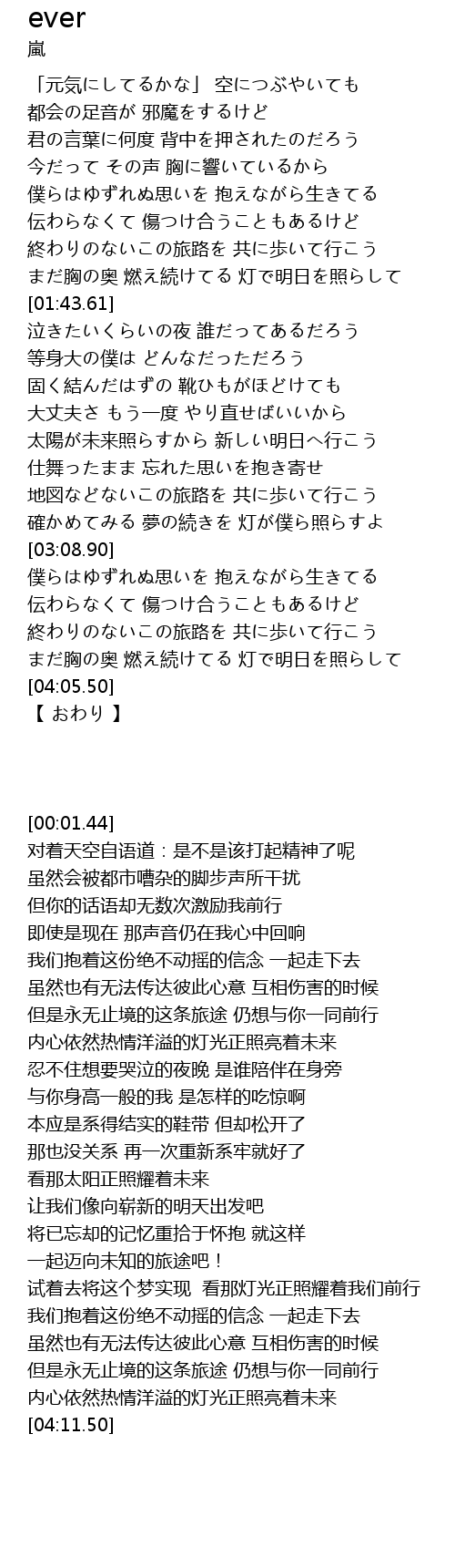 | [03:44.69] | 終わりのないこの旅路を 共に歩いて行こう |