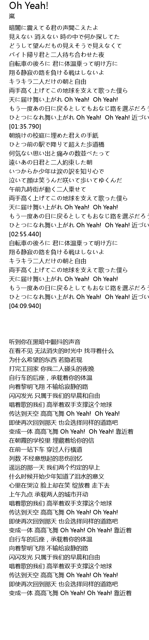 | [04:00.210] | wǔ shàng Oh Yeah! Oh Yeah! jìn |