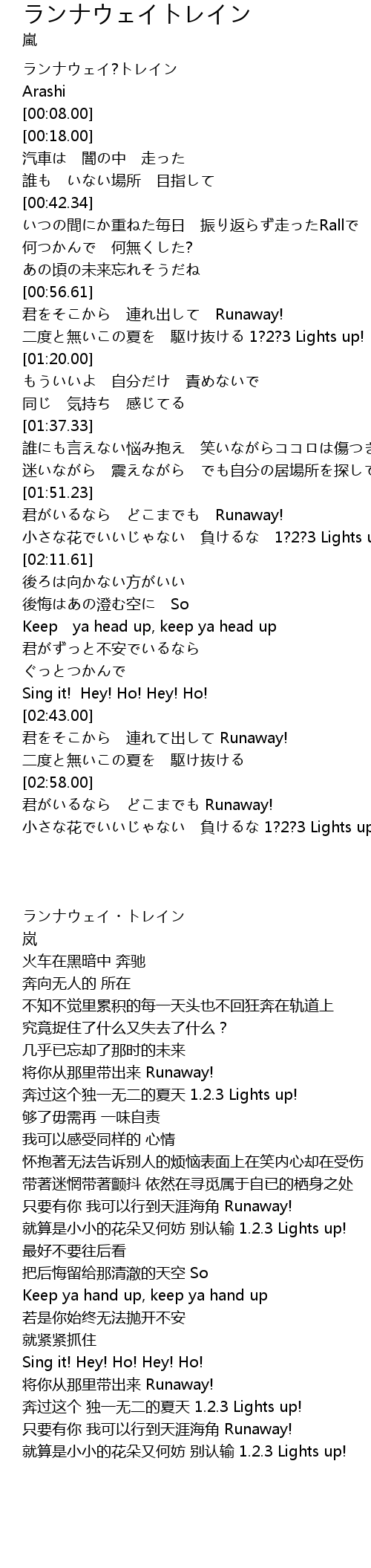 | [02:59.04] | 君がいるなら どこまでも Runaway! |