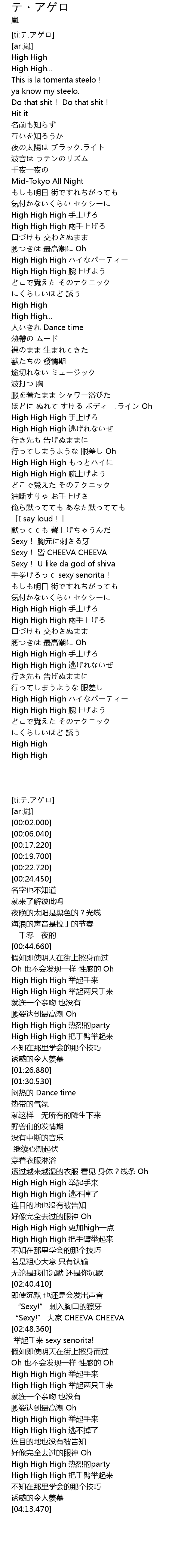 | [00:59.670] | High High High 兩手上げろ |