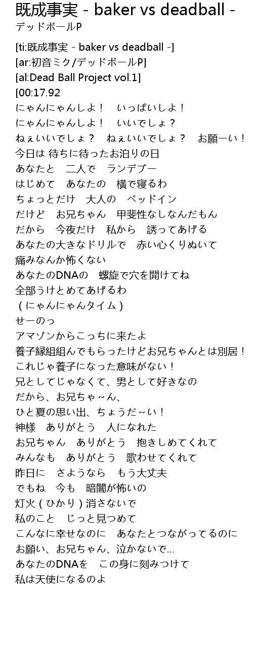 | [ti:既成事実 - baker vs deadball -] | |
