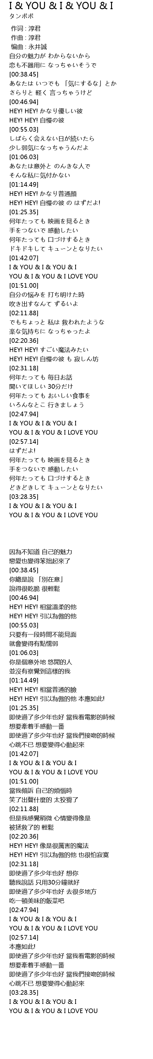 | [03:32.72] | YOU & I & YOU & I LOVE YOU |