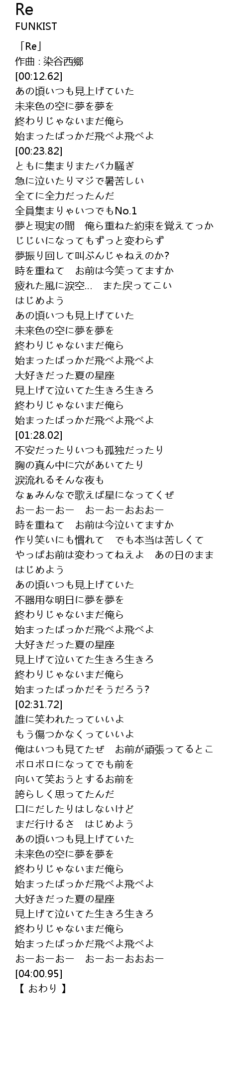 | [00:18.74] | 終わりじゃないまだ俺ら |