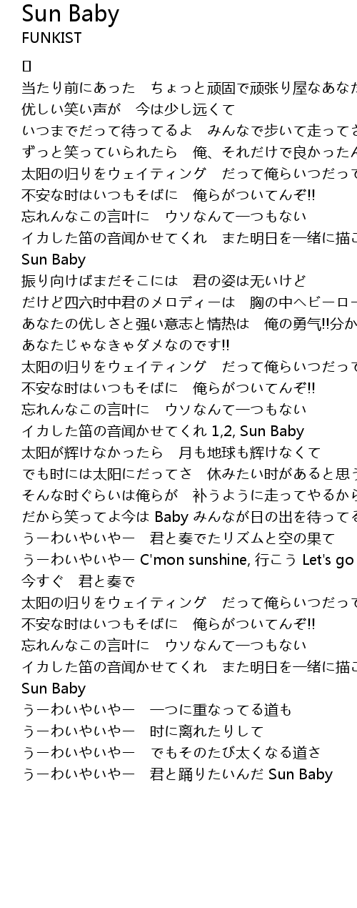 | イカした笛の音闻かせてくれ また明日を一绪に描こうぜ Sun Baby | |