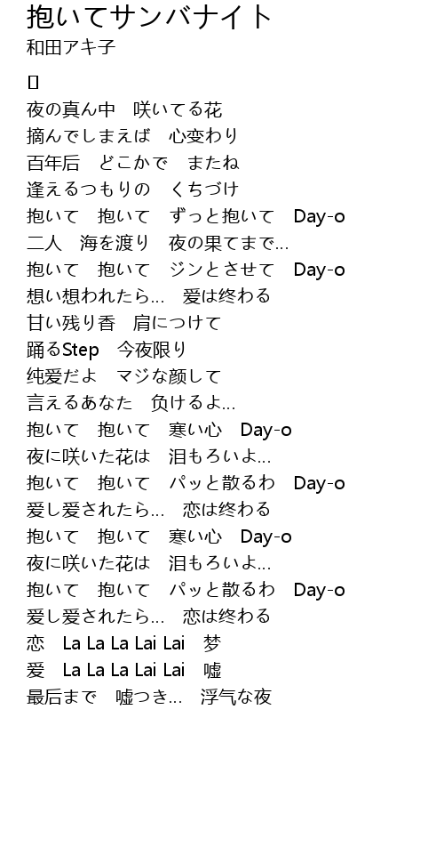 | 抱いて 抱いて ジンとさせて Day-o | |