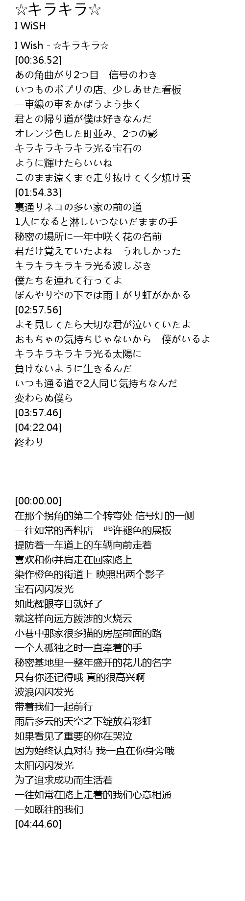 | [00:00.00] | I Wish - ☆キラキラ☆ |