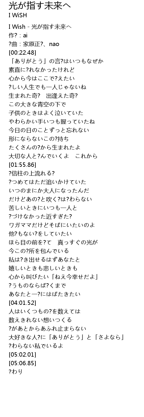 | [00:00.00] | I Wish - 光が指す未来へ |