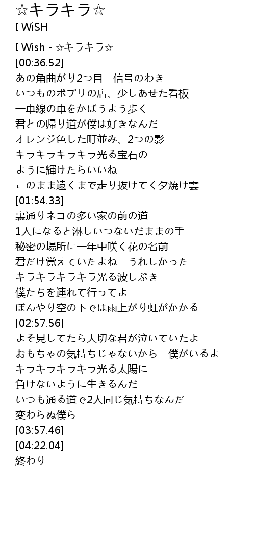 | [00:00.00] | I Wish - ☆キラキラ☆ |