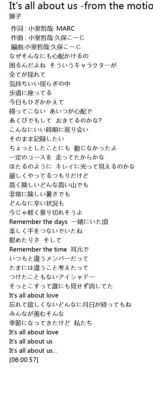 | Song | It's all about us -from the motion picture"BEAT"- |