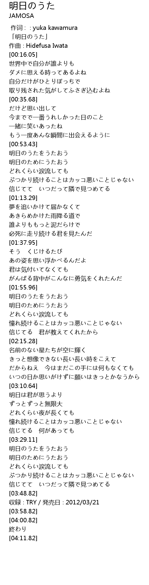 | [03:53.82] | 収録∶TRY/発売日∶2012/03/21 |