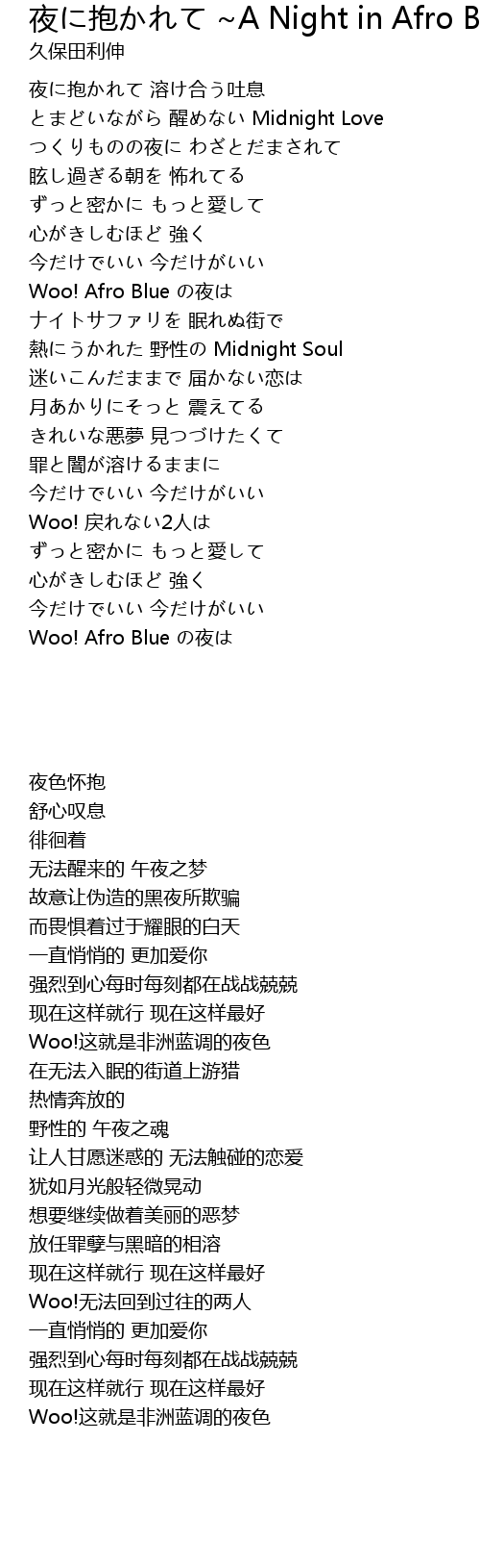 | Song | 夜に抱かれて ~A Night in Afro Blue~ |