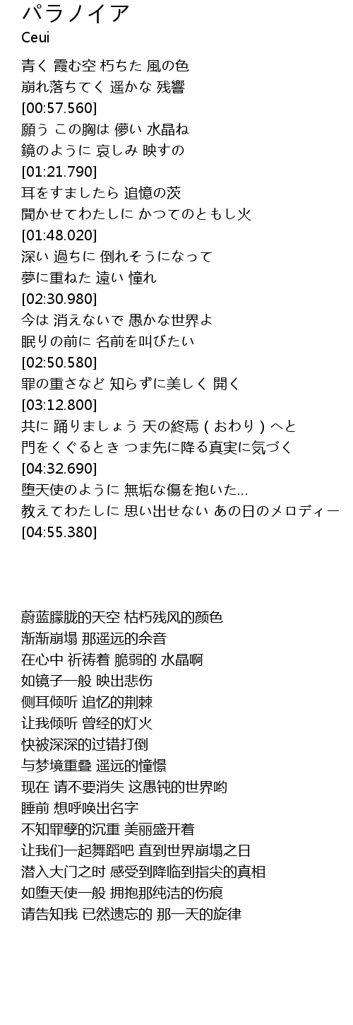 | [04:15.270] | 共に 踊りましょう 天の終焉(おわり)へと |