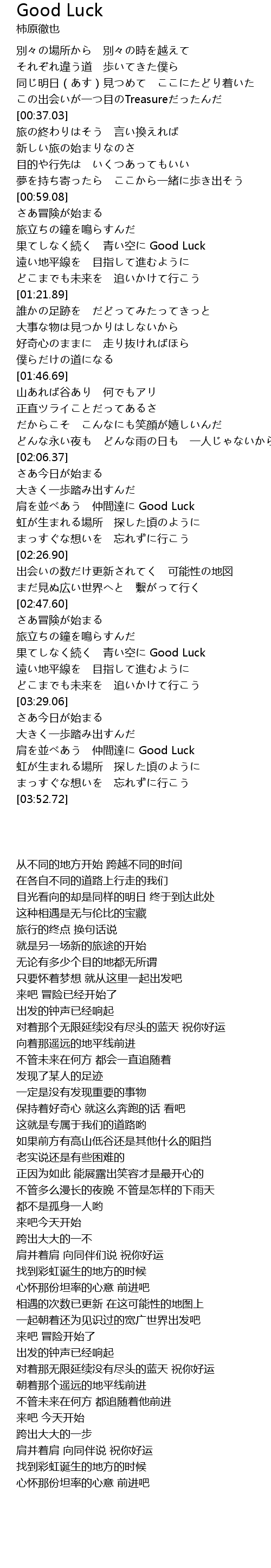 | [03:14.45] | 果てしなく続く 青い空に Good Luck |