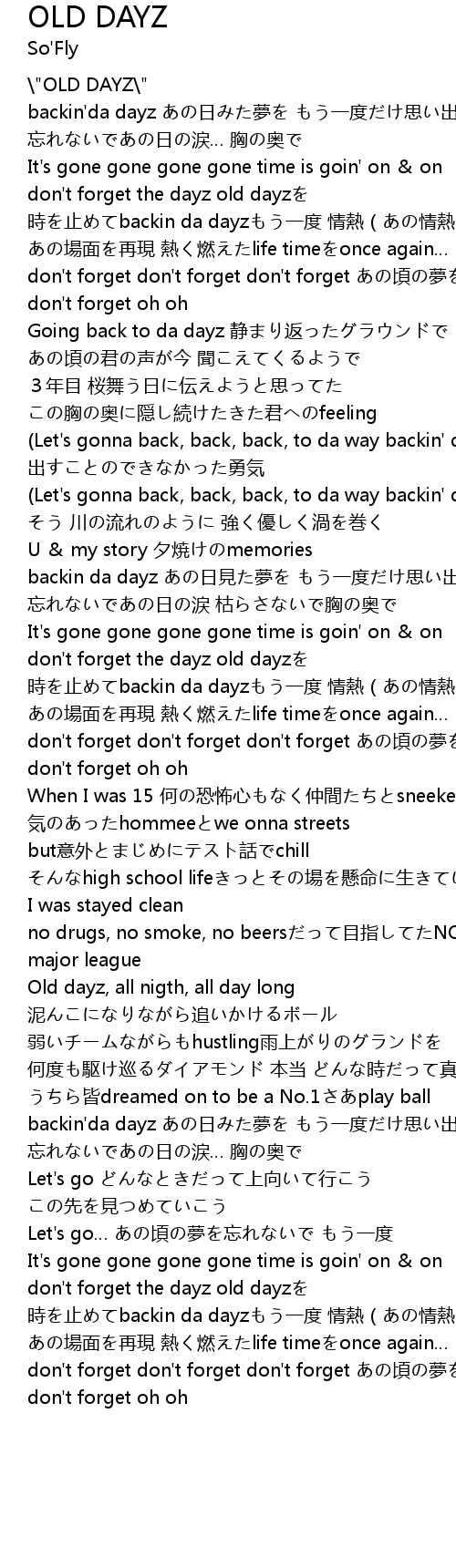 | don' t forget the dayz old dayz | |