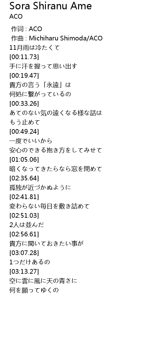 | [00:01.000] | zuò qǔ : Michiharu Shimoda ACO |