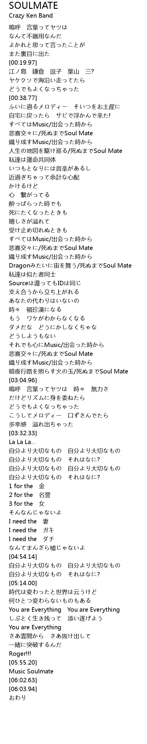 | [02:04.28] | Dragon zhòu wǔ sǐ Soul Mate |