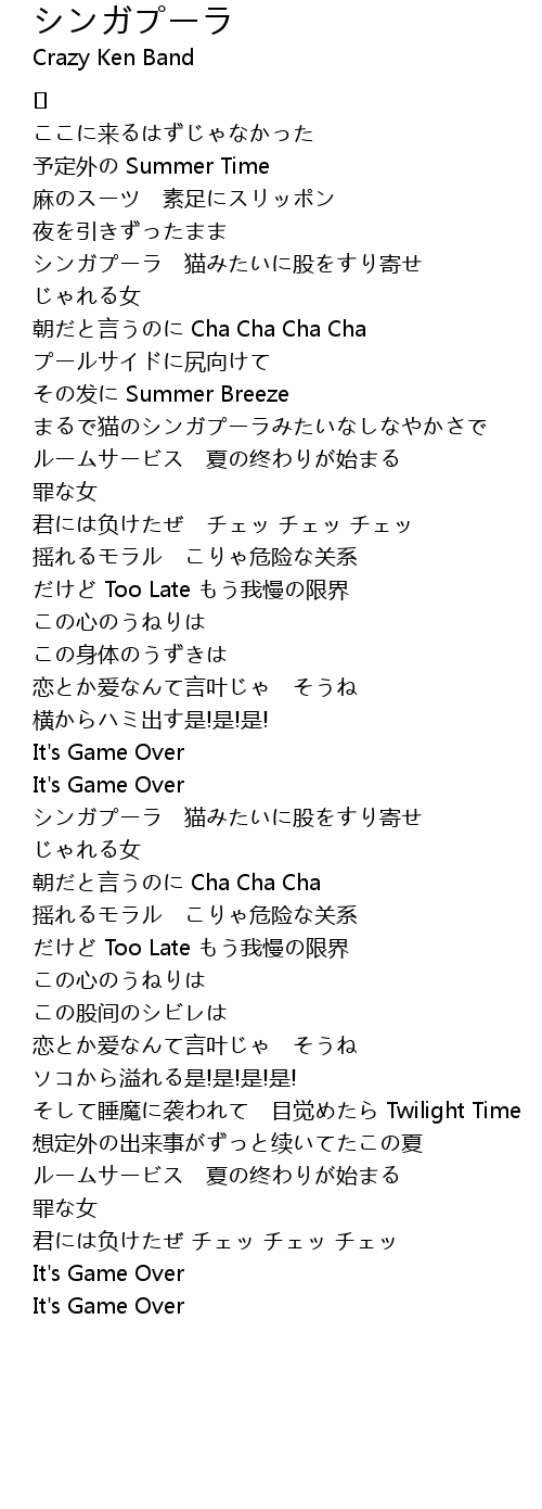 | シンガプーラ 猫みたいに股をすり寄せ | |