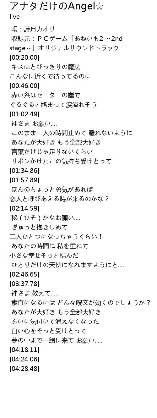 | [02:38.24] | ひとりだけの天使になれますようにと..... |