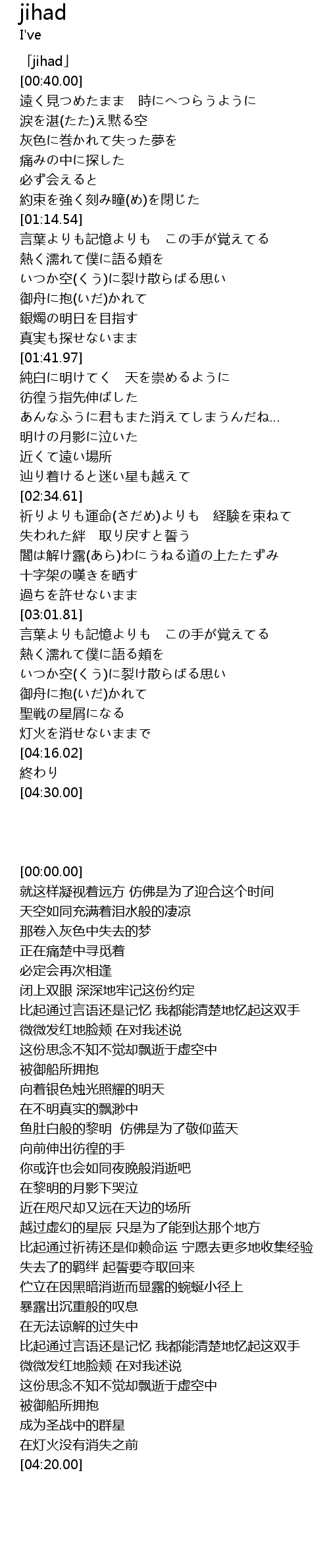 | [02:02.52] | 純白に明けてく 天を崇めるように |