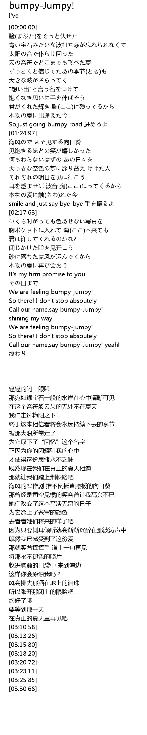 | [03:25.85] | Call our name, say bumpyJumpy! yeah! |