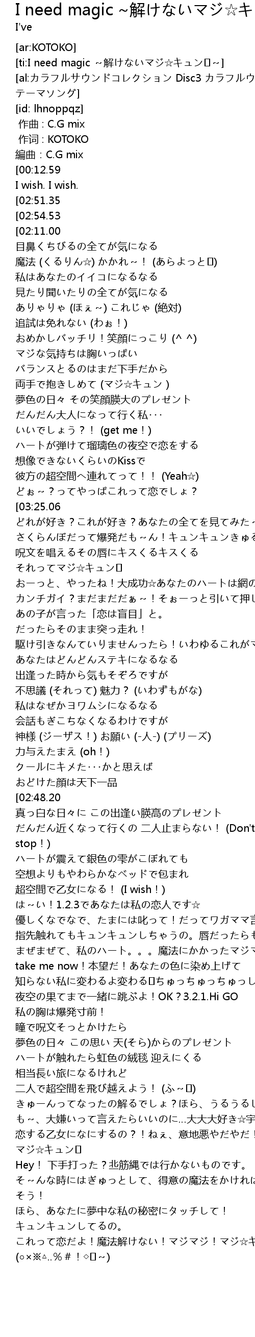 | [ti:I need magic ~解けないマジ☆キュン♪~] | |