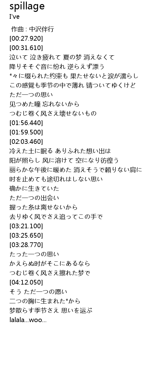 | [00:40.100] | 泣いて 泣き疲れて 夏の梦 消えなくて |