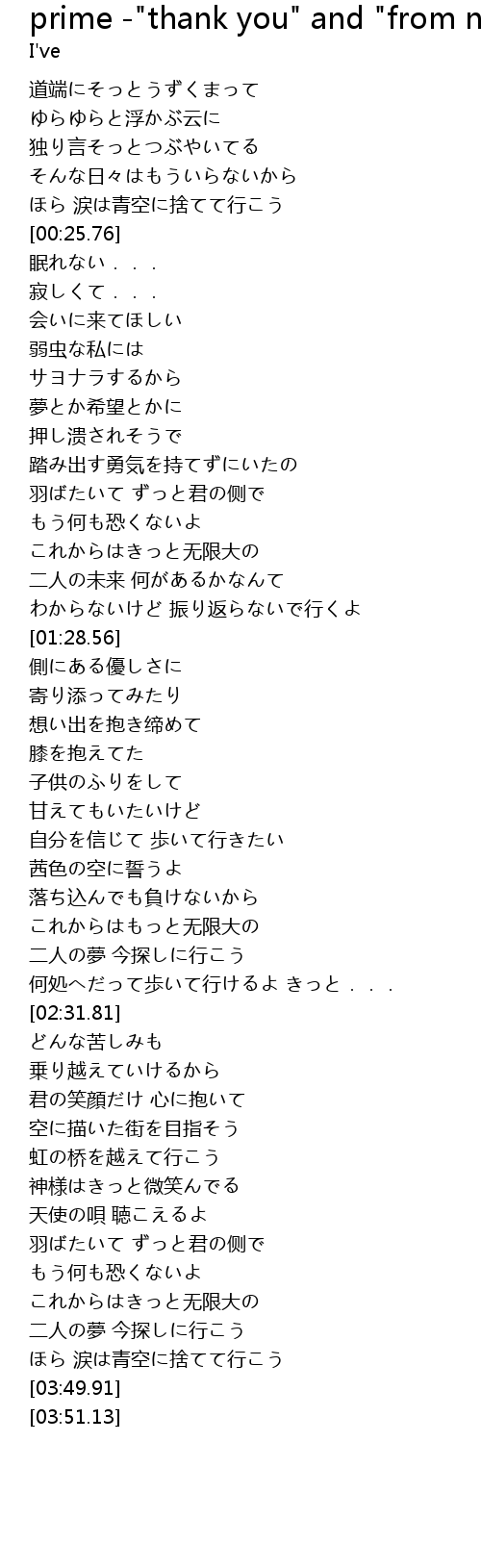 | [03:26.51] | 羽ばたいて ずっと君の侧で |