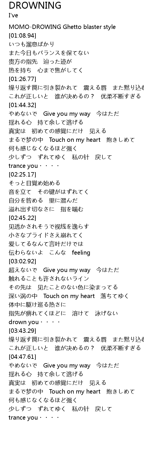 | [04:47.86] | やめないで Give you my way 今はただ |